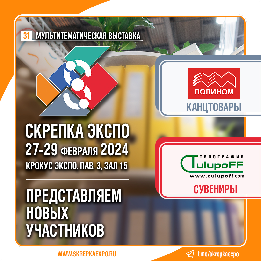 Приглашаем все компании рынка к участию в 31-й Международной мультитематической выставке «Скрепка Экспо» 27–29 февраля 2024 года в МВЦ «Крокус Экспо».