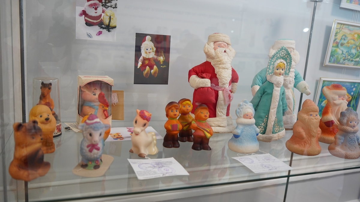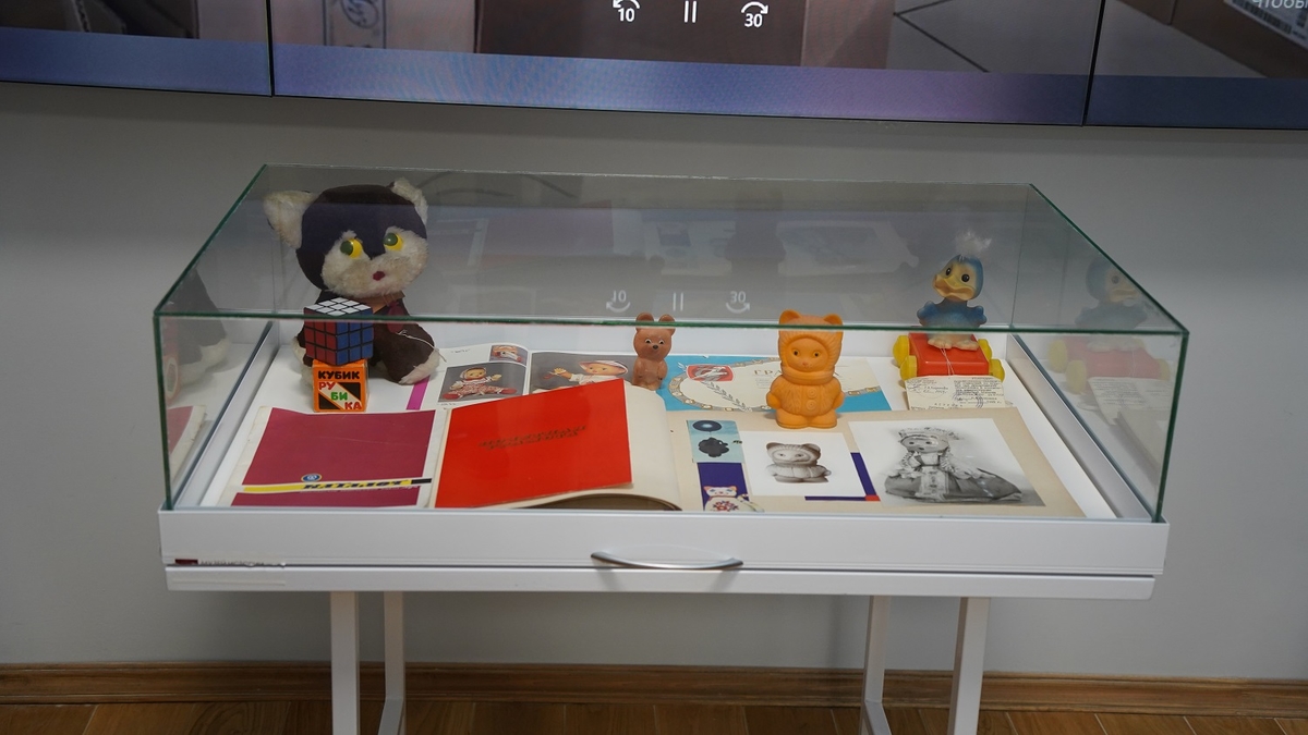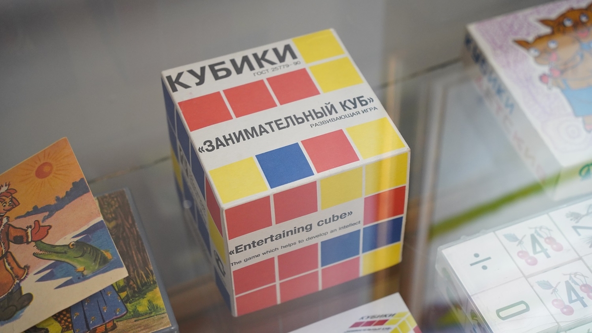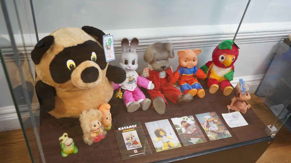 Одна из самых тёплых частей выставки — коллекция игрушек и игр, которые производил завод «Луч» в советские годы. Куклы с именами Марина, Ира, Оля и Света, популярные пупсы, фигурки Деда Мороза и Снегурочки, мягкие любимцы советских детей, маскарадные маски, настольные игры и знаменитый кубик Рубика — всё это возвращает взрослых в детство и вызывает живой интерес у юных посетителей.