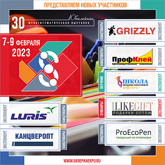 Участники 30-й «Скрепки Экспо»: Grizzly, iLikeGift, «ПрофКлей», «Школа продавца канцтоваров», ProEcoPen, КанцВерОпт, LURIS