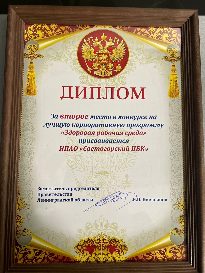Светогорский ЦБК получил награду за заботу о здоровье сотрудников