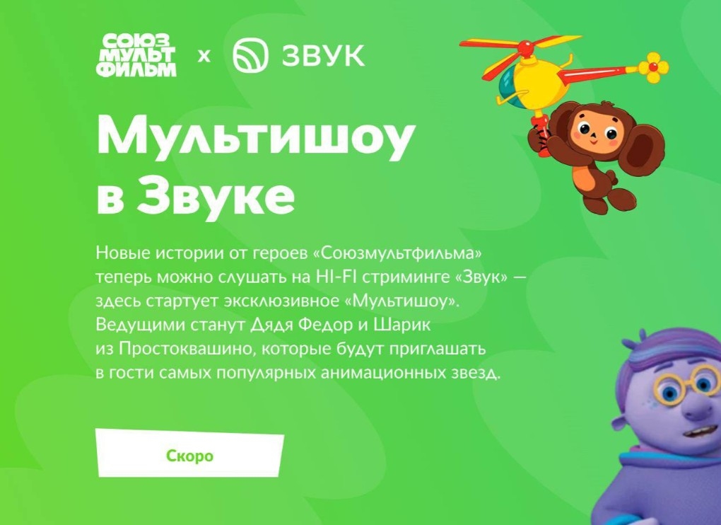 В «Звуке» выходит детское развивающее аудиошоу с мультгероями
