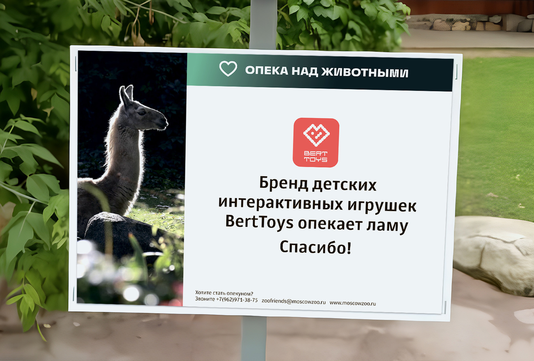 Бренд BertToys стал опекуном ламы в Московском зоопарке