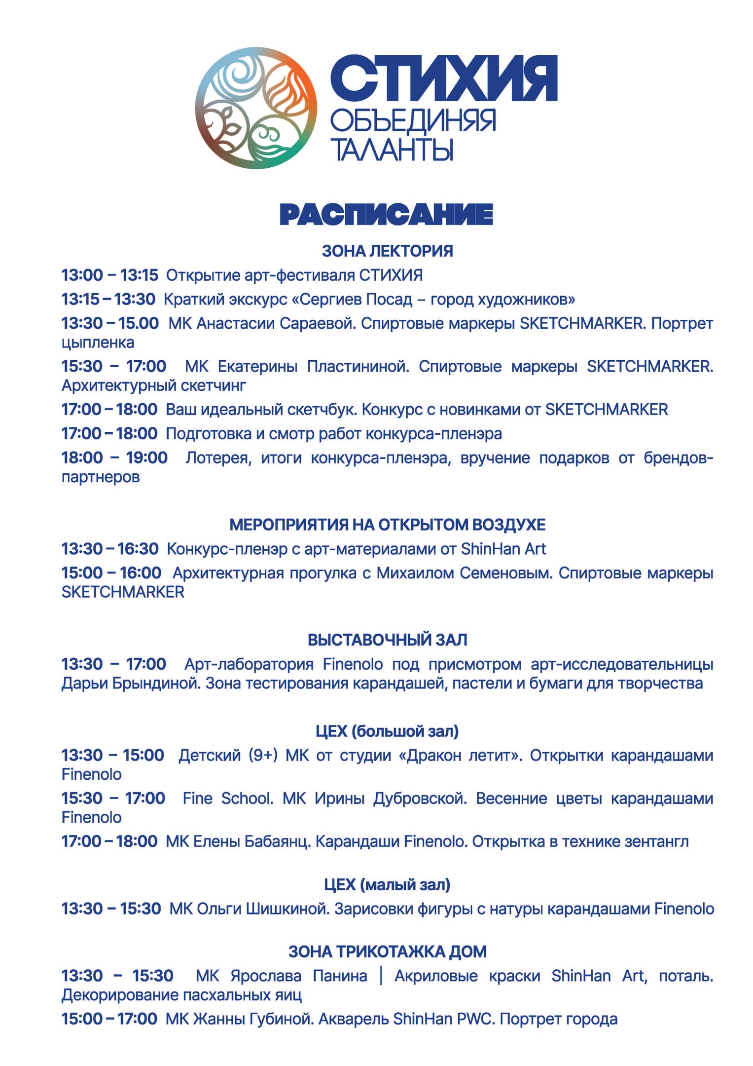 Арт-фестиваль «СТИХИЯ» в Сергиевом Посаде: подробное расписание