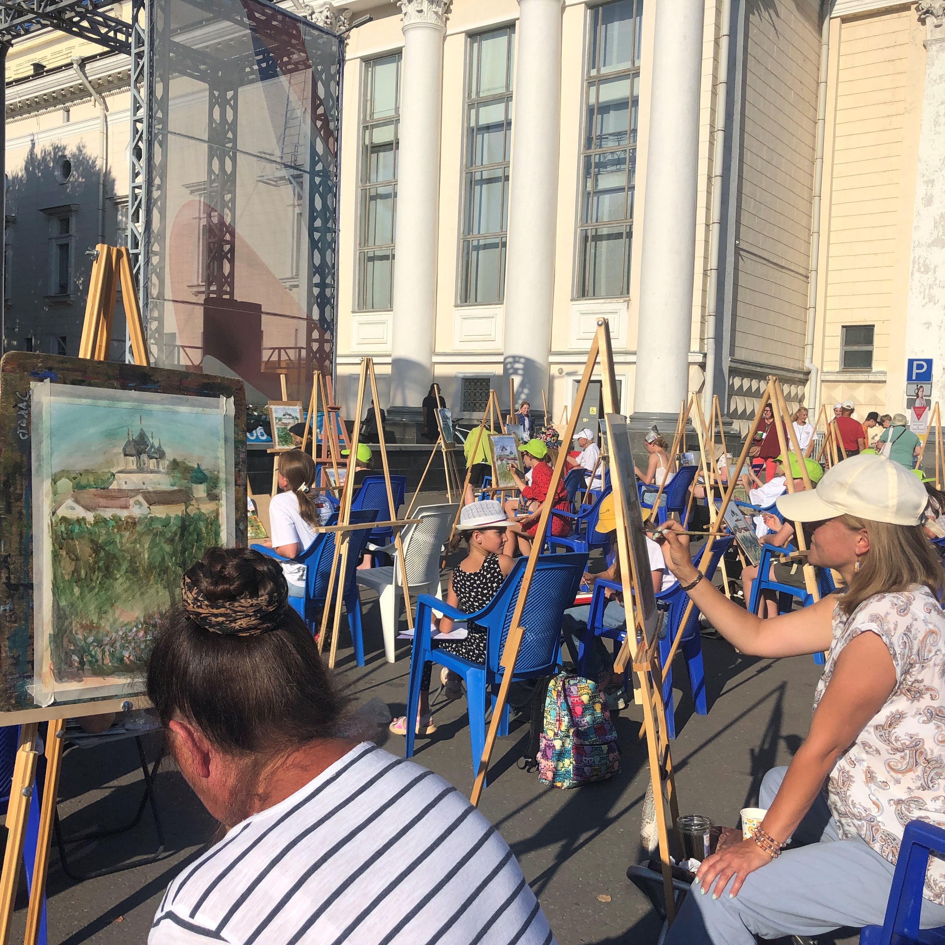 Ярким событием пленэра стал Общегородской мастер-класс «Рисуй любимый город». Это возможность каждому жителю города творить вместе с профессионалами. Под руководством участника «Васнецовского пленэра», художника-живописца Юлии Жуковой на Театральной площади рисовали 100 человек!