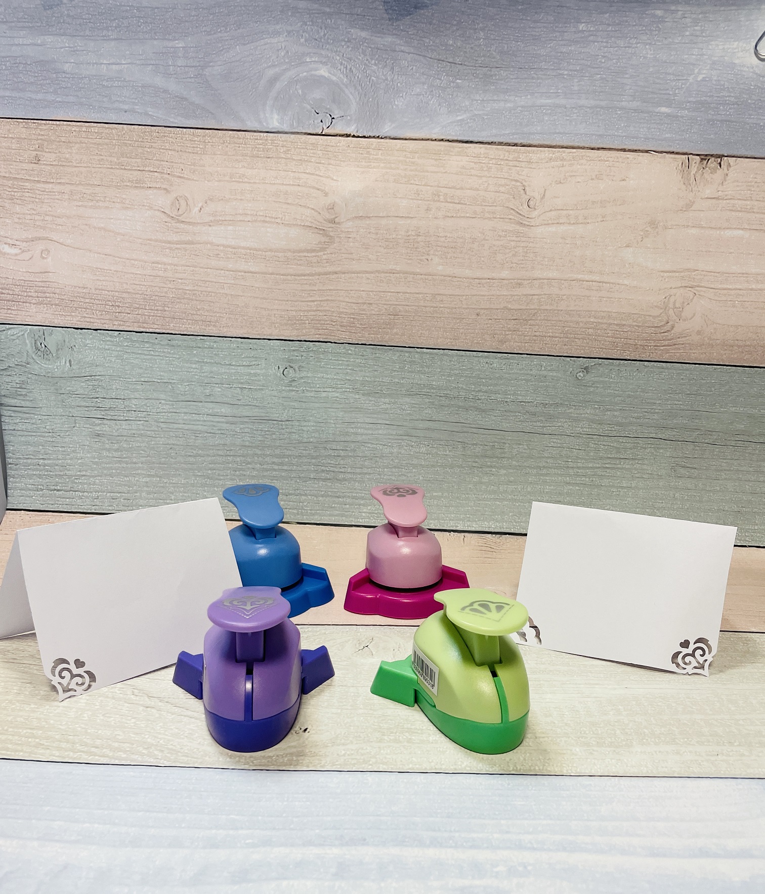Арт.: 89031. Дырокол фигурный, пластиковый, угловой. Диаметр вырубки — 25 мм.
