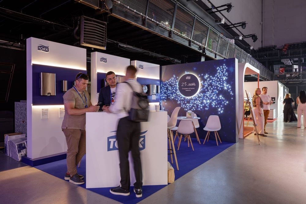 Как партнёр премии в этом году команда Tork оформила фирменный стенд, отражающий ключевые ценности, разделяемые брендом. На стенде гости и участники мероприятия могли детально изучить информацию о деятельности Tork, проектах и инициативах бренда, а также современных гигиенических решениях. Помимо информационной части стенд включал и продуктовую: каждый мог ознакомиться с линейкой продуктов Tork. Это различные протирочные материалы и косметические средства, которые являются важными составляющими элементами гигиены человека.