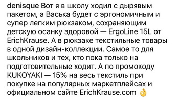 Семья Кукояк оценила эргономичность и функциональность рюкзака ErgoLine® 15L, а также мешок, пеналы и фартук с нарукавниками. Денис, как любитель моды, отдельно подчеркнул, что все текстильные товары выполнены в единой дизайн-коллекции.