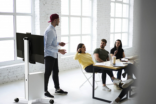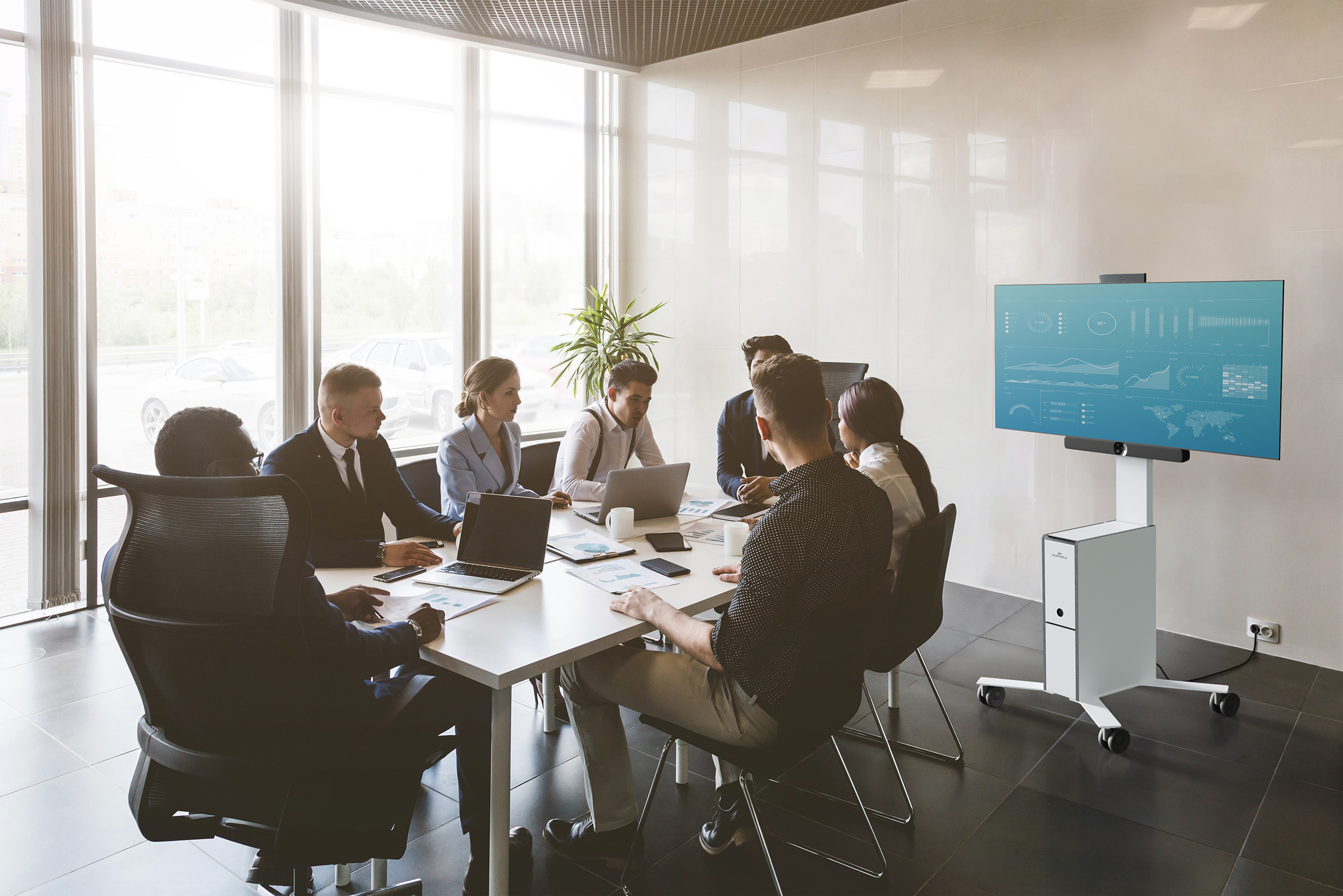 COWORKSATION® — это мобильная тележка для ТВ, изготовленная из высококачественных материалов и оснащенная множеством практичных опций.