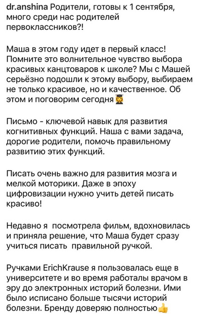 У Елены вышла публикация, где она рассказывает про свою дочь Машу, которая в этом году идёт в первый класс. Елена со всей ответственностью подошла к подготовке ребёнка к школе. В публикации блогер рассказывает о своём личном опыте использования ручек ErichKrause® в работе с большим количеством записей и о важности подбора правильной ручки для письма.