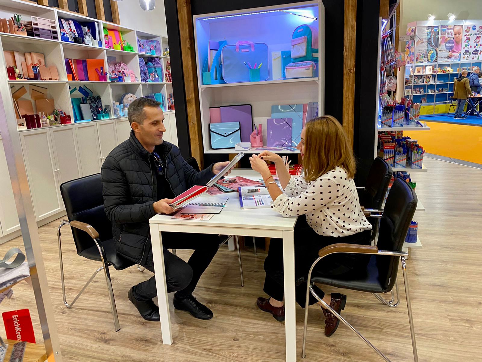 Гостей выставки привлекли современные дизайны и высокое качество продукции Erich Krause, выпускаемой на собственных производственных площадках — это новые коллекции текстильной и пластиковой продукции.