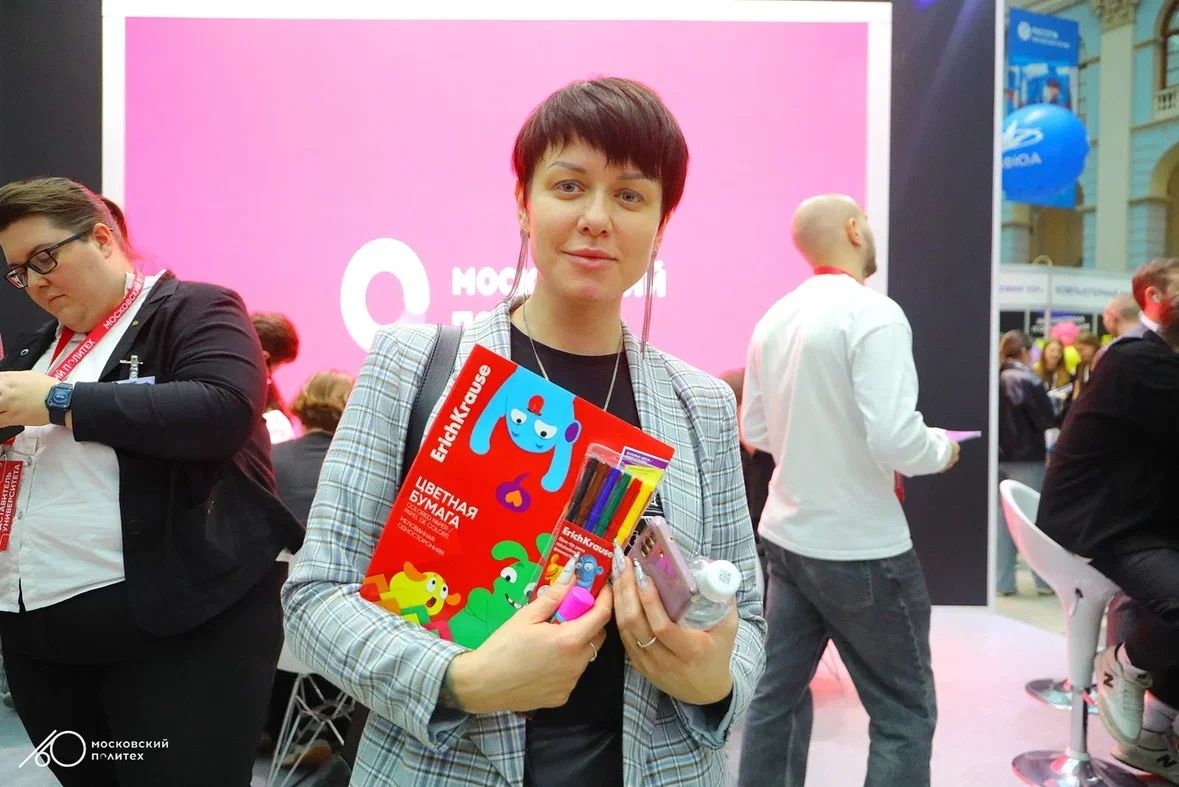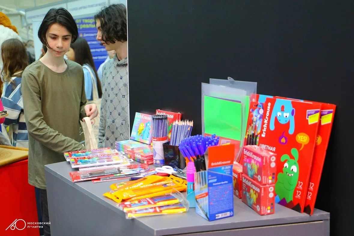 Местом притяжения абитуриентов и их родителей стал стенд Московского Политеха при поддержке официального партнёра ErichKrause, на котором сотрудники университета общались с гостями и рассказывали об образовательных программах, оснащении научно-технических лабораторий, творческих и спортивных направлениях.