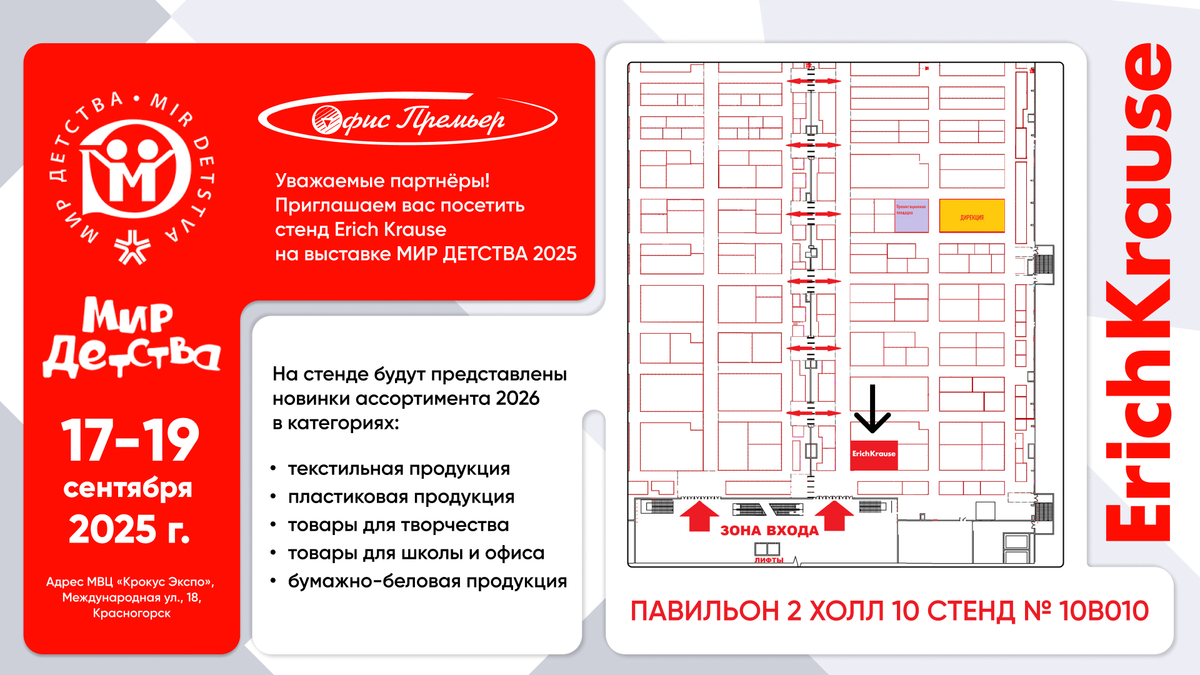 Мы с нетерпением ждём вас, чтобы продемонстрировать масштабный стенд, на котором будут представлены новинки ассортимента-2026 в категориях текстильной, пластиковой и бумажно-беловой продукции. Гостей ждут яркие товары для творчества, школы и офиса.