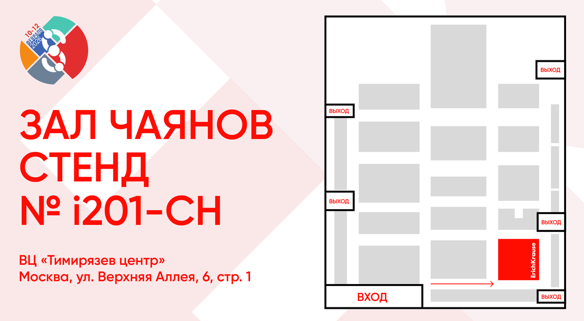 Стенд ErichKrause будет в зале «Чаянов», №i201-CH. До встречи!