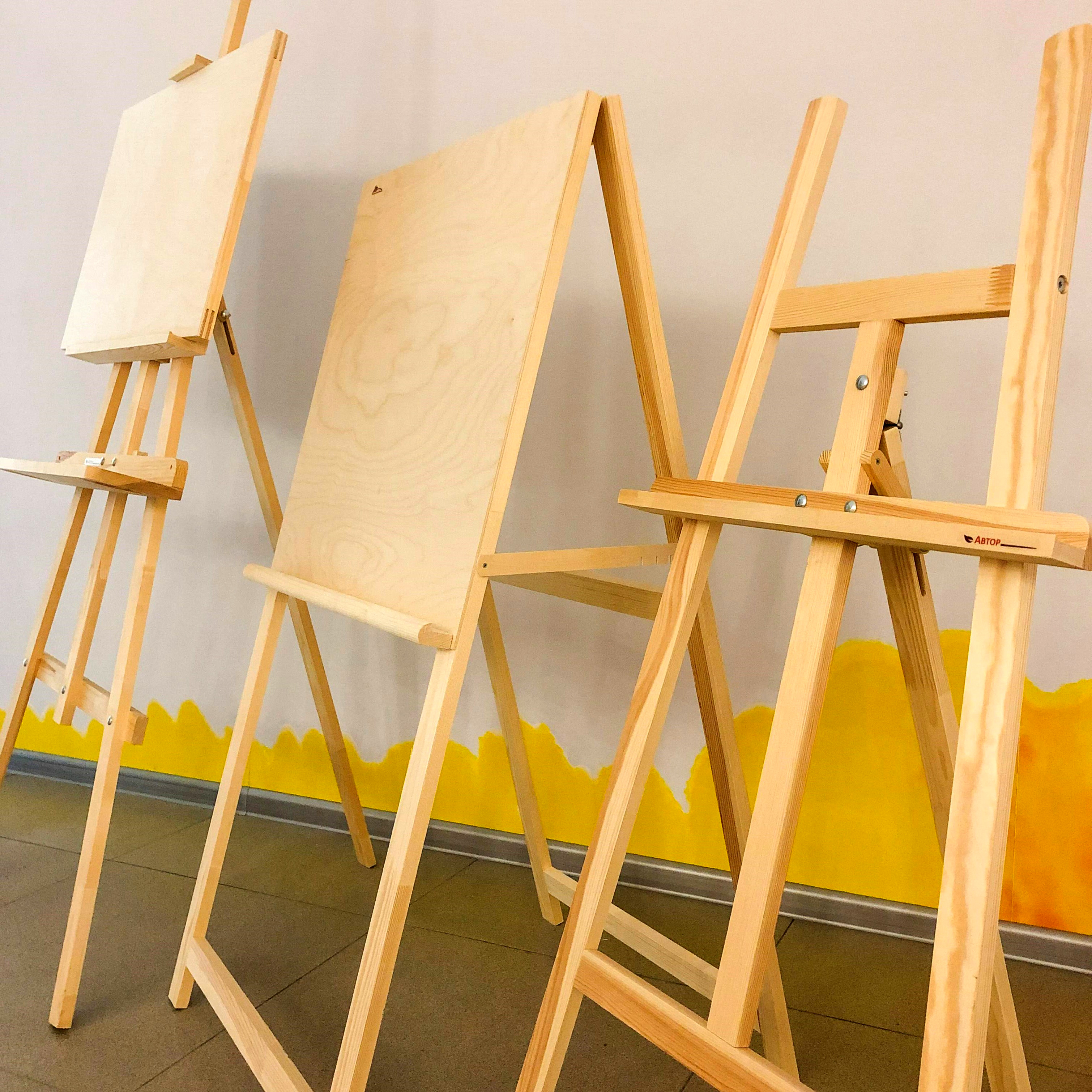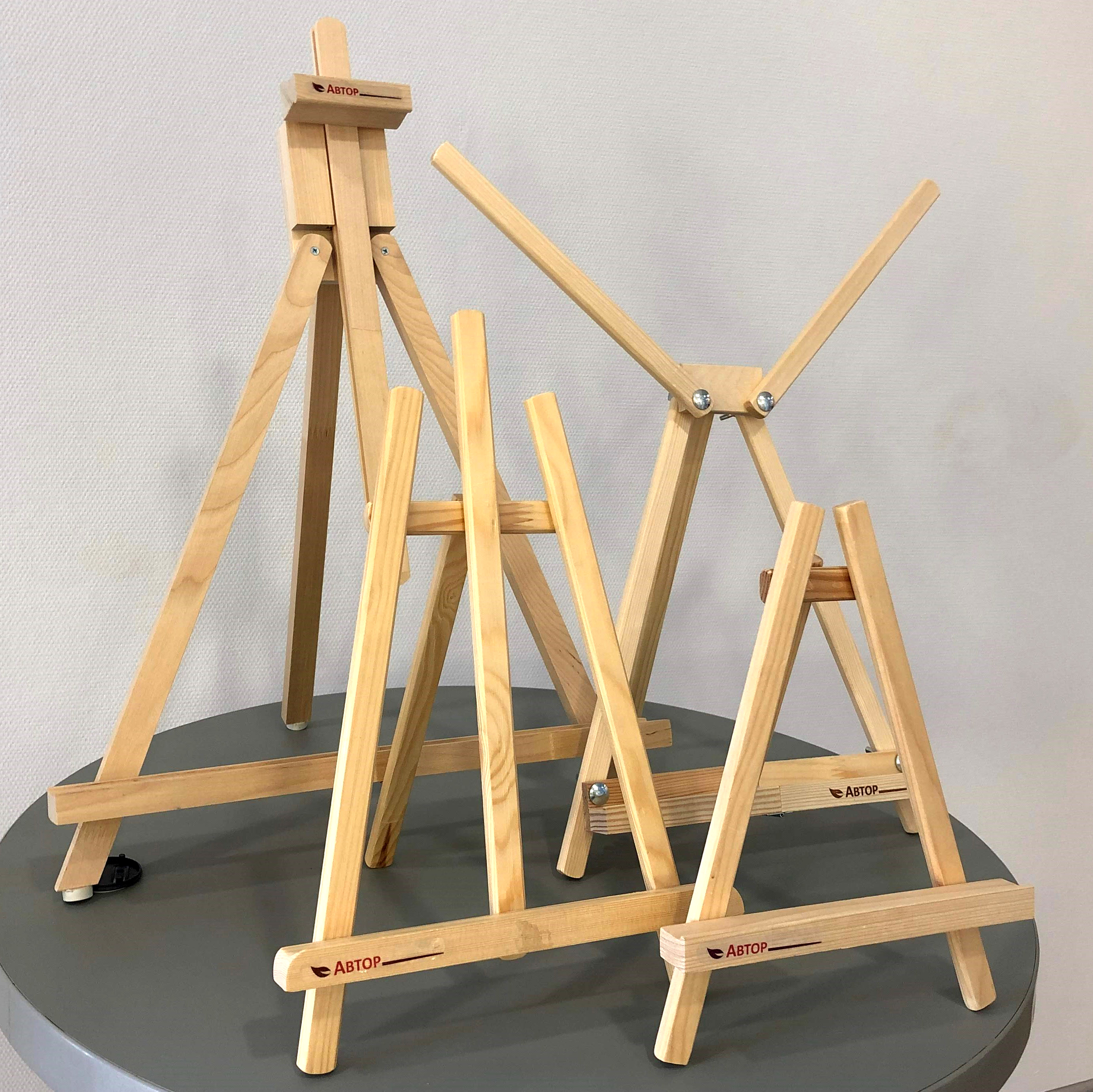 3. Для продвинутых покупателей представьте 1-2 варианта напольных мольбертов. Ориентируйтесь на модели, которые могут компактно храниться: мольберты-лира, палочные и т. п.