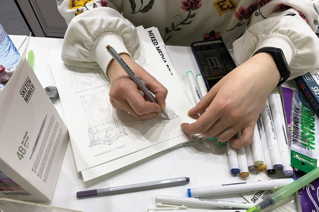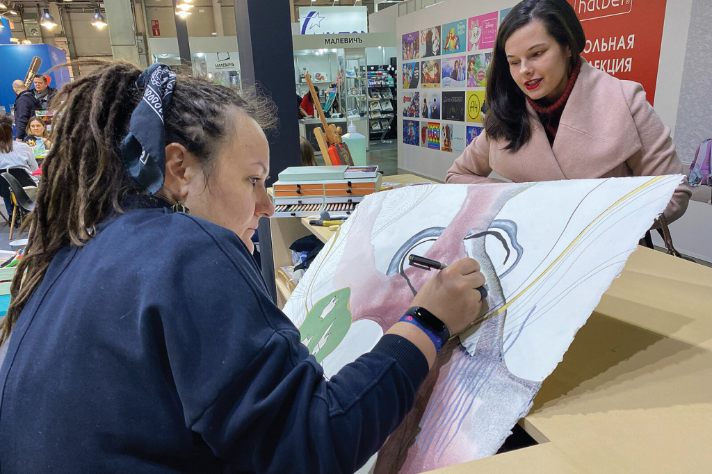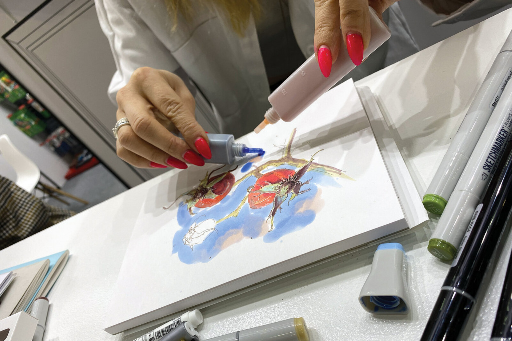 Посетители стенда узнали о новинках Sketchmarker (обновлённые пеналы для маркеров, двусторонняя маркерная бумага Mirror), Fabriano и других брендов.