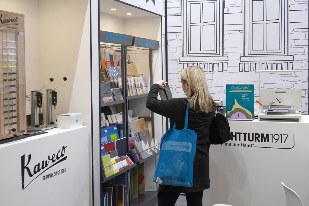 Популярностью пользовались немецкие бренды Kaweco и Leuchttrum1917: в их зоне можно было собрать перьевую ручку на тех же станках, которыми пользуются мастера в Германии, и посмотреть, как создаётся именной оттиск на блокноте. Некоторые гости получили в подарок пишущий инструмент собственной ручной работы и уникальные блокноты.