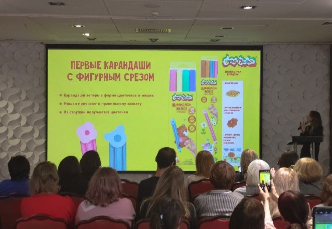 Спикерами на конференции стали директор казанского представительства Татьяна Белавина, директор по маркетингу Анастасия Алексеева, бренд-менеджер LOREX и Schoolformat Анна Зотова, бренд-менеджер «Каляки-Маляки» и Creativiki Вера Браницкая. Они рассказали о тенденциях рынка, а также показали новинки брендов и лучшие товары в ассортиментных матрицах торговых марок.