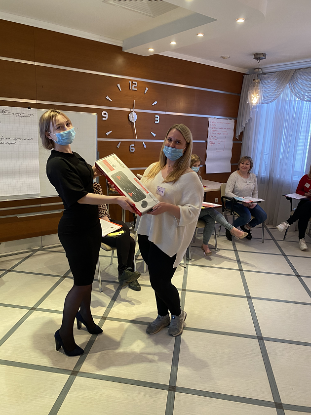 Во время обучения обсуждался психологический аспект работы в продажах (определение психотипа клиента, алгоритм работы с возражениями). Классическая подача информации чередовалась в тренинге с игровыми интерактивными элементами, благодаря чему сформировалась комфортная позитивная атмосфера.