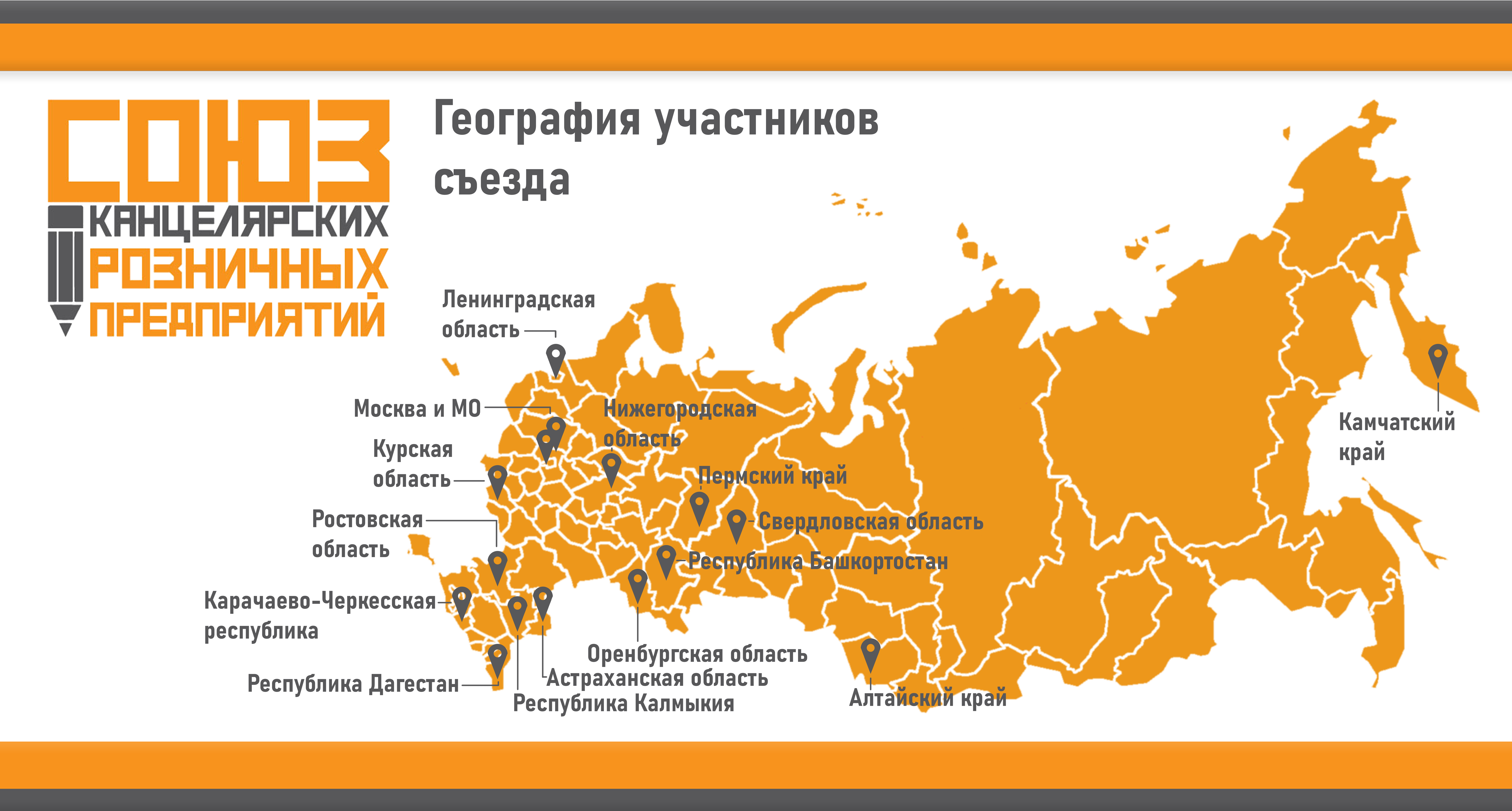 Отметим, что 2-й Съезд «Союза Канцелярских Розничных Предприятий» собрал участников из разных городов России. География получилась весьма обширной.
