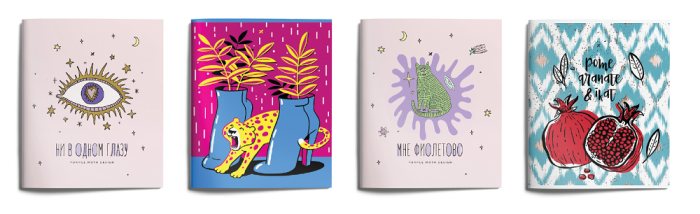 — При разработке коллекций мы часто дополняем референсы и меняем первоначальные планы, чтобы найти самые свежие тренды, которые будут на пике популярности в следующем году. В коллекции 2022 года мы покажем яркие дизайны с сумасшедшими персонажами, неоновых леопардов с рыбами и медузами, летние коллекции с бассейном в минималистичной графике, нестандартные дизайны на тему природы, выполненные в чёрной графике с золотом, тетради, похожие на глянцевые журналы или на книги в ярких обложках. Помимо этого, в коллекции есть дизайны с восточными мотивами, с графикой в стиле нулевых, в стиле ретро и, конечно же, небо и облака, как всегда, в новом, нестандартном исполнении — в сочетании стилистики масляной живописи и векторной графики.