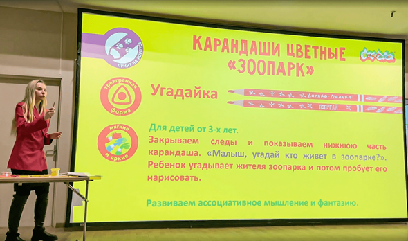 В этом году «Каляка-Маляка» выступала не только как партнёр и спонсор, но и как эксперт по раннему развитию. Групп бренд-менеджер Елена Дроздова презентовала новинки, которые помогают малышу не только творить, но и развиваться: карандаши «МУЛЬТИКОЛОР» произвели на педагогов неизгладимое впечатление, ведь они идеально подходят для обучения ребёнка в игровой форме. Открытием для многих стали чернографитные карандаши, фломастеры-зайчики, ароматные фломастеры и т. д.
