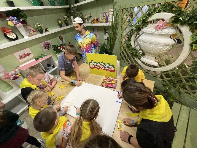 В перерывах между работой и получением профессиональных навыков дети участвовали в блиц-викторинах, захватывающих квестах и лотереях, призами в которых стали лучшие товары для творчества от «Каляки-Маляки»: большие наборы карандашей, фломастеры, пластилин и многое другое.