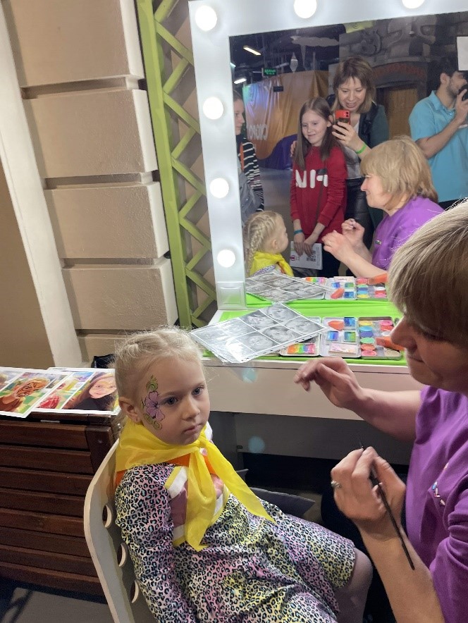 В течение всего дня на площадке работала мастер по аквагриму, которая создавала на лицах детей узоры, от которых они были в восторге.