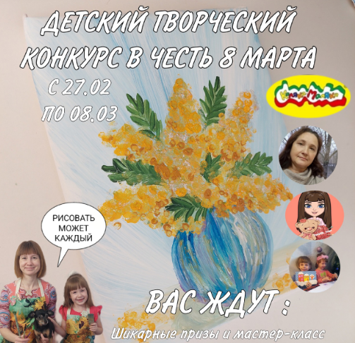 А еще у нас стартовал конкурс к Международному женскому дню. Участвовать легко: слепить/нарисовать/создать поздравление к празднику. Конкурс длится до 8 марта.
