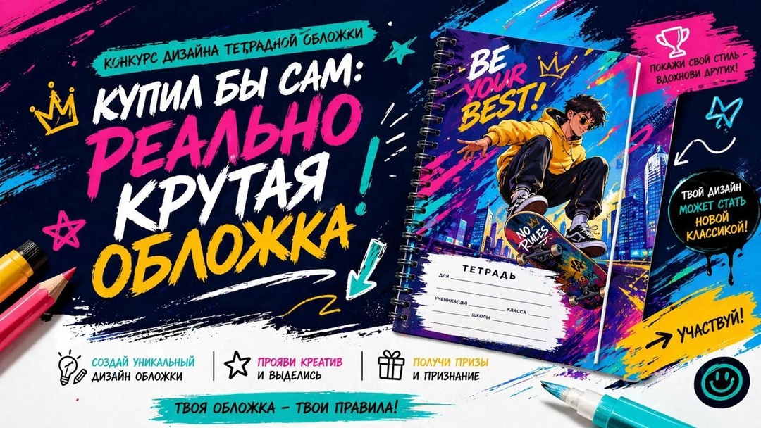 Картонно-бумажный комбинат «КАМА» лесопромышленной группы «Свеза» объявил конкурс тетрадных обложек для школьников и студентов Пермского края «Купил бы сам: реально крутая обложка». Лучшие работы выйдут в тираж и появятся в продаже в одной из розничных сетей Перми.
