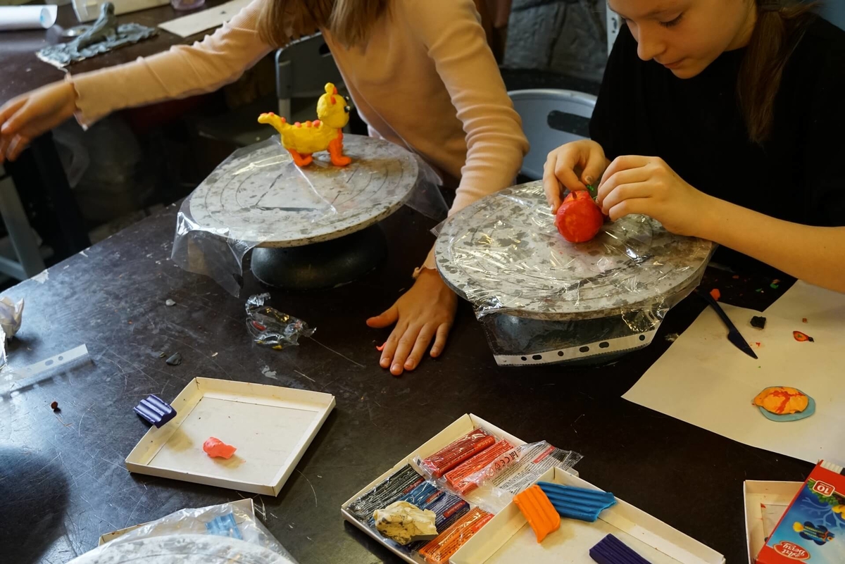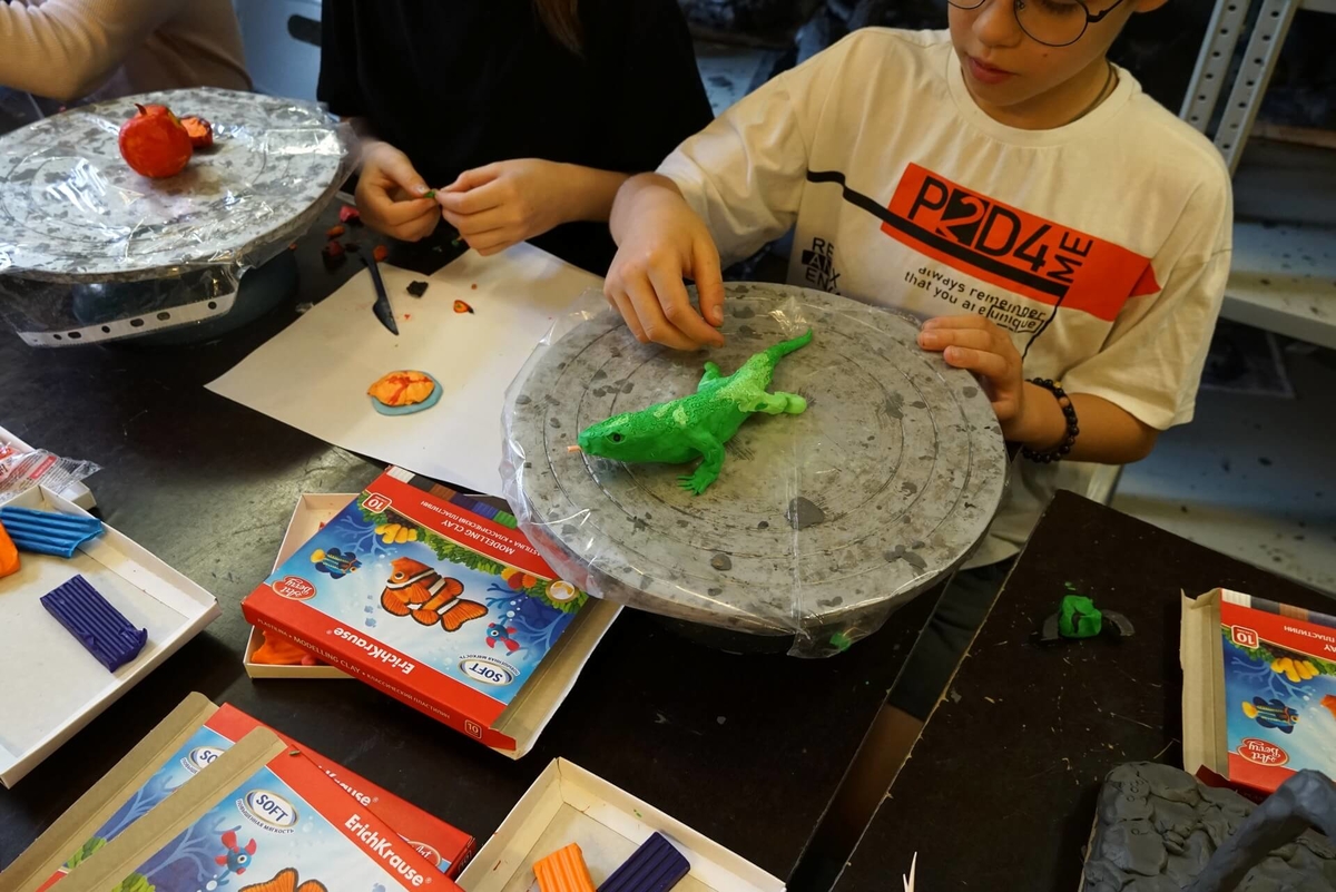 Творческие каникулы в академии знакомят ребят младшего школьного возраста с разными направлениями в искусстве. На занятиях по прикладным дисциплинам дети расписывают керамику, создают витражи, делают скульптуры малых форм и учатся технике создания анималистических фигур.