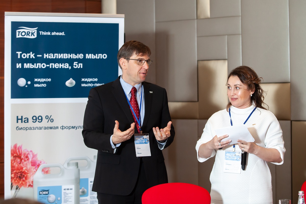 Команда бренда Tork компании Essity [1] провела в Москве бизнес-завтрак для представителей СМИ. Коммерческий директор профессионального ассортимента Tork Максим Барков и руководитель отдела маркетинга Ирина Лебедева рассказали о ситуации в компании, локализации производства и поделились планами бренда на 2023 год.