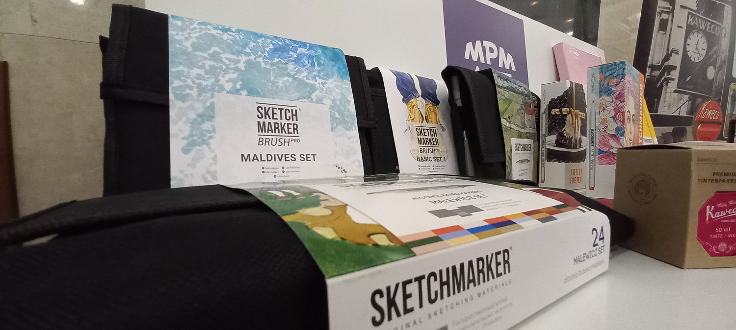 - Sketchmarker — наборы маркеров серии «Пушкинский музей» и новая линейка разноформатных скетчбуков выгодно выделялись стенде, привлекая внимание гостей насыщенной палитрой;