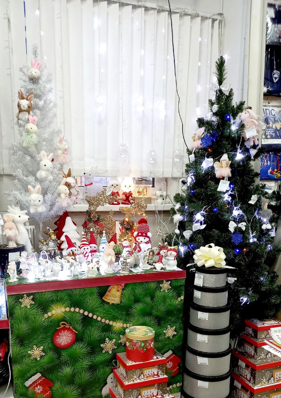 В новогоднем украшении магазина многие детали сделаны своими руками, что практически не потребовало дополнительных вложений. В ассортименте и заодно в украшении магазина мы сделали акцент на символ 2023 года — зайчика. Это привлекает внимание покупателей и подталкивает их совершать дополнительные покупки. Как же без милого зайчика на Новый год!