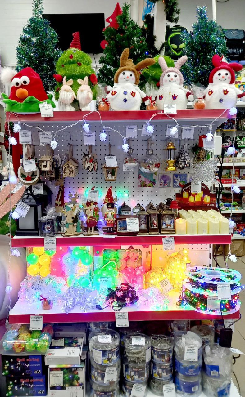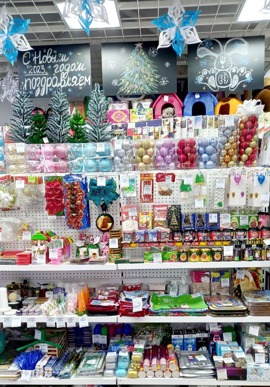В новогоднем украшении магазина многие детали сделаны своими руками, что практически не потребовало дополнительных вложений. В ассортименте и заодно в украшении магазина мы сделали акцент на символ 2023 года — зайчика. Это привлекает внимание покупателей и подталкивает их совершать дополнительные покупки. Как же без милого зайчика на Новый год!