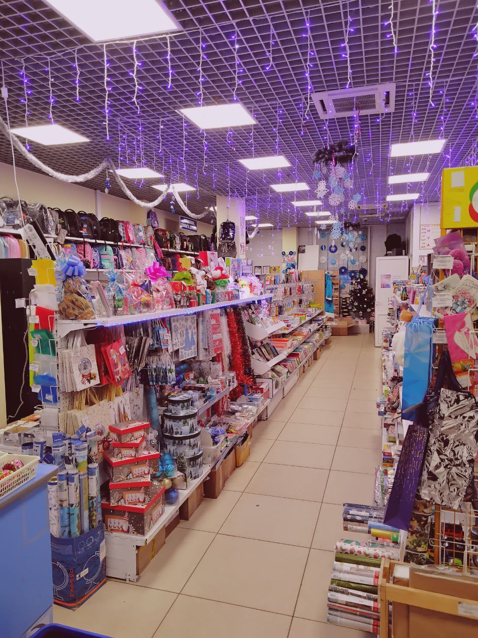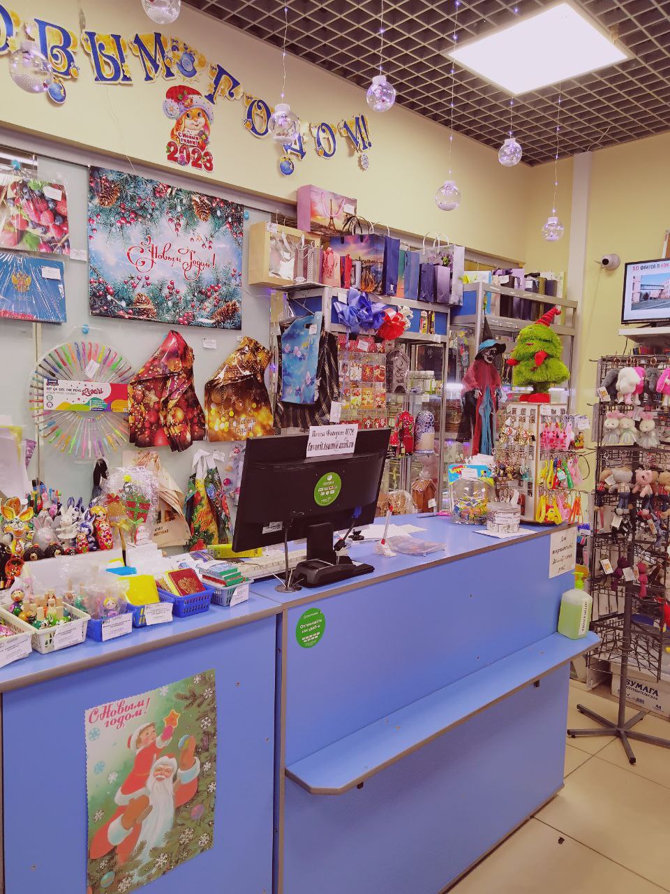 Новогодняя пора — одно из самых прекрасных времён для покупок подарков близким и любимым людям. Именно поэтому умелыми ручками нашего дружного коллектива мы постарались погрузить наших покупателей в сказку. Торговый зал оформлен в сине-белых тонах, где перекликаются картинки-открытки советской эпохи, вытынанки и поделки ручной работы с современной подсветкой. Людям приятно находиться в особой атмосфере праздника, а это привлечение аудитории и увеличение продаж. С Новым годом!