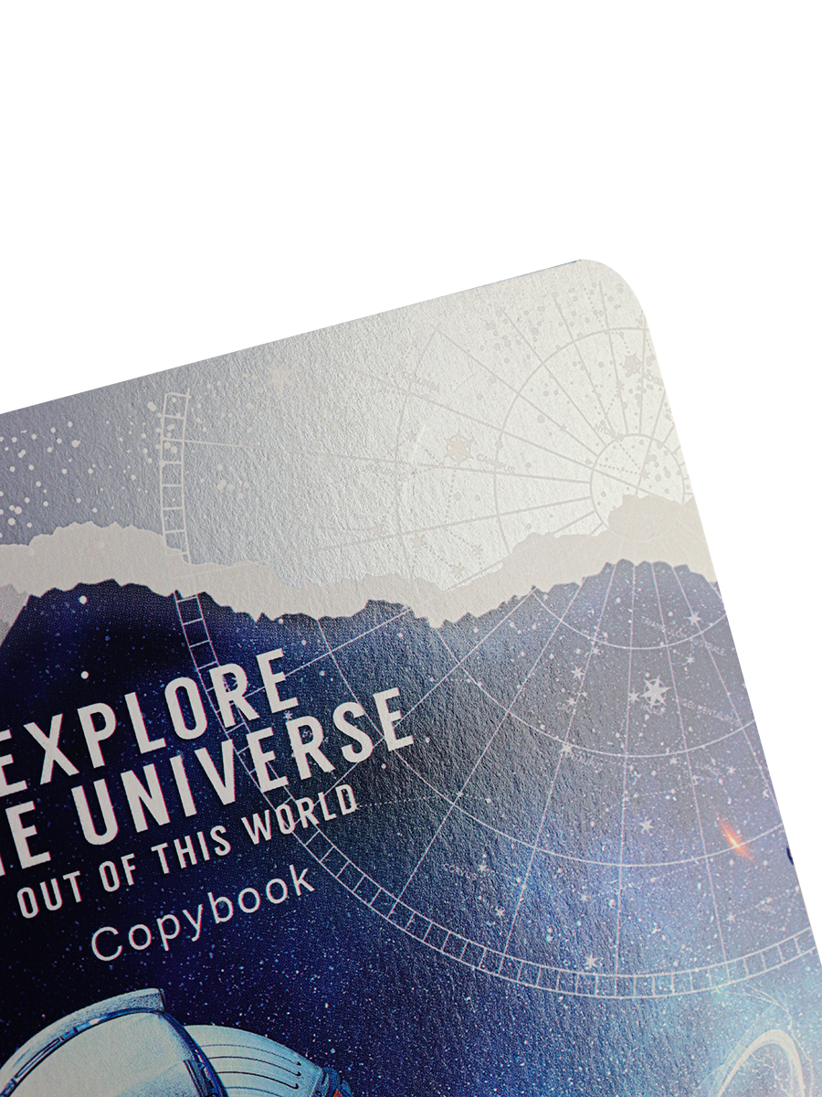 Космос — один из самых актуальных трендов, представленных в канцелярской продукции. Космическая тема просто создана для того, чтобы показать во всей красе возможности дополнительных обработок на обложках.