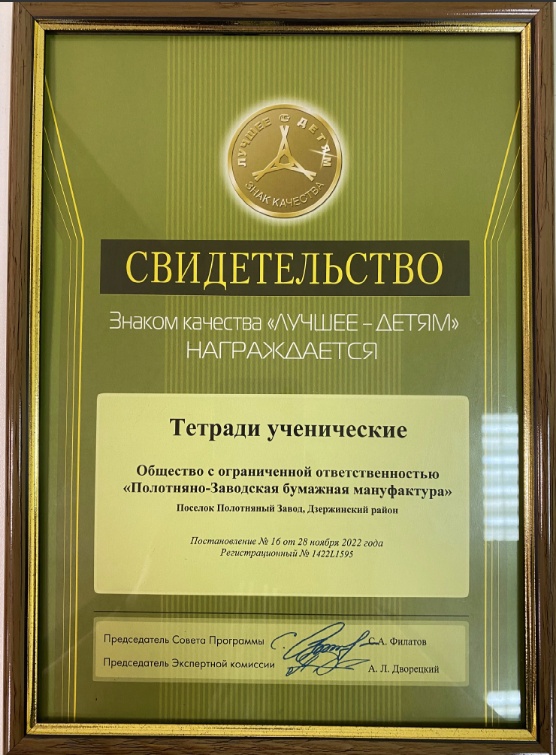 Продукция ООО «ПЗБМ» тетради ученические награждены знаком качества «Лучшее — детям».