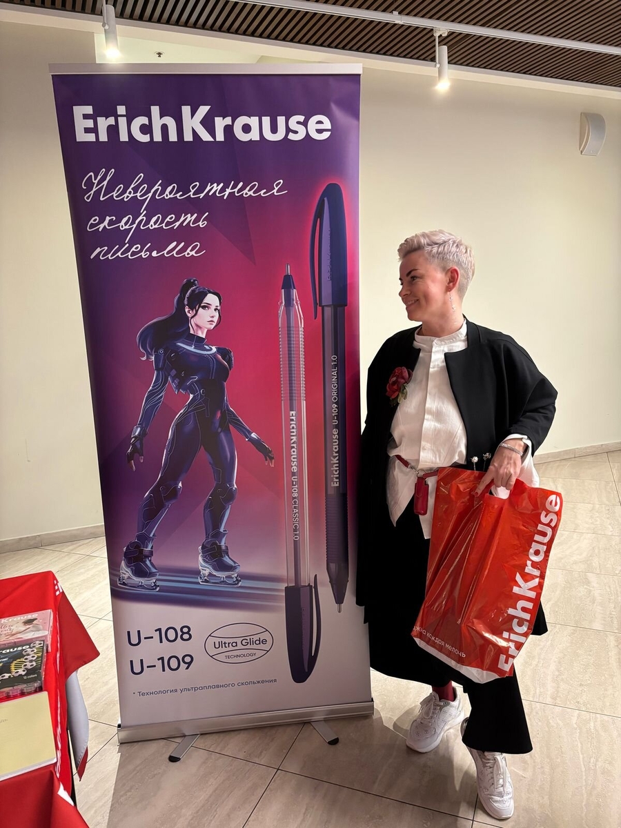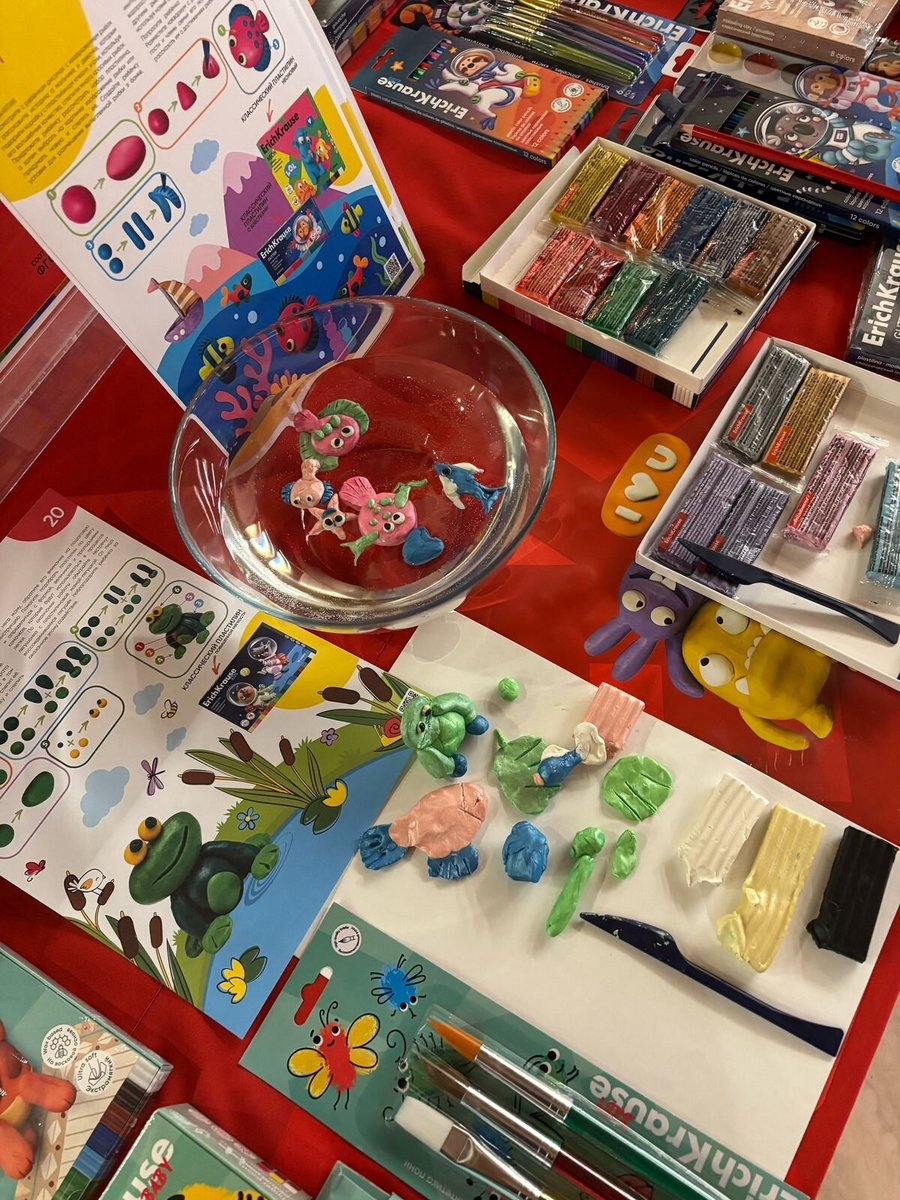 ErichKrause приготовил стенд с яркими новинками материалов для детского творчества серий Baby, Kids и коллекции Jolly Friends. Желающие протестировали плавающий пластилин Kids Space Animals Candy Pearl. Пластичный материал с особой текстурой не тонет в воде, поэтому фигурки морских обитателей, слепленные взрослыми и детьми в рамках мастер-класса, достойно выдержали водные процедуры. Хитом фестиваля стал пластилин Jolly Friends Skin. Педагоги отметили естественность оттенков, с которыми получаются детальные и правдоподобные скульптуры, поделки и портреты. Цветные карандаши Kids Space Animals Jumbo дополнили восторженные отзывы учителей, отметивших экстрамягкий грифель, который не крошится при рисовании. Эргономичный треугольный корпус способствует правильному захвату, поэтому пальцы ребёнка меньше устают.