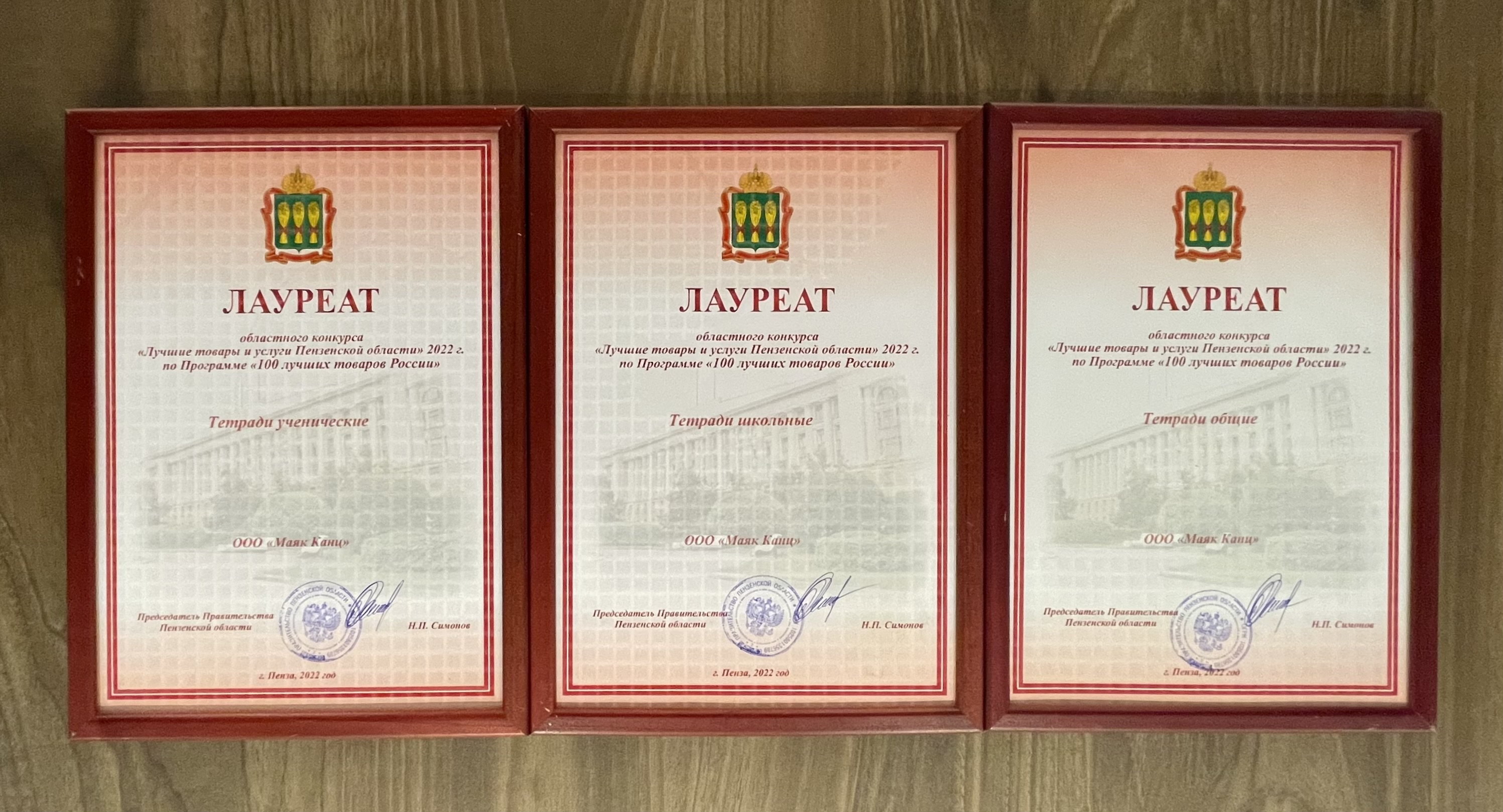 В число финалистов вошла компания «Маяк Канц», диплом победителя получил директор Сергей Плотников. В номинации «Промышленные товары для населения» звания «Лауреат» удостоены школьные, ученические и общие тетради.