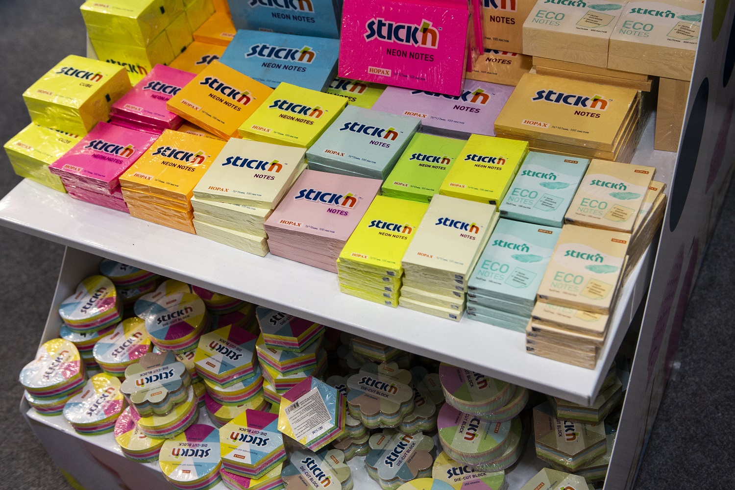 Бурный интерес посетителей стенда вызвала новая коллекция шариковых ручек Golden Arris, которая обещает стать настоящим хитом. На стенде также была представлена расширенная линейка офисной техники Deli. Живой интерес посетителей вызвали яркие дизайны стикеров с клеевой основой StickN, новые модели степлеров и дыроколов KW-Trio с разным функционалом, цветами и формами корпуса.