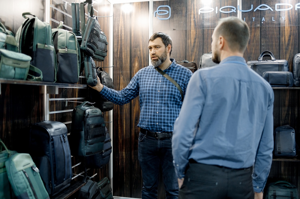 Гости экспозиции могли получить комментарии экспертов от производителя, оценить сезонные коллекции весна/лето — 2024, примерить рюкзак Piquadro или модную дамскую сумочку The Bridge.