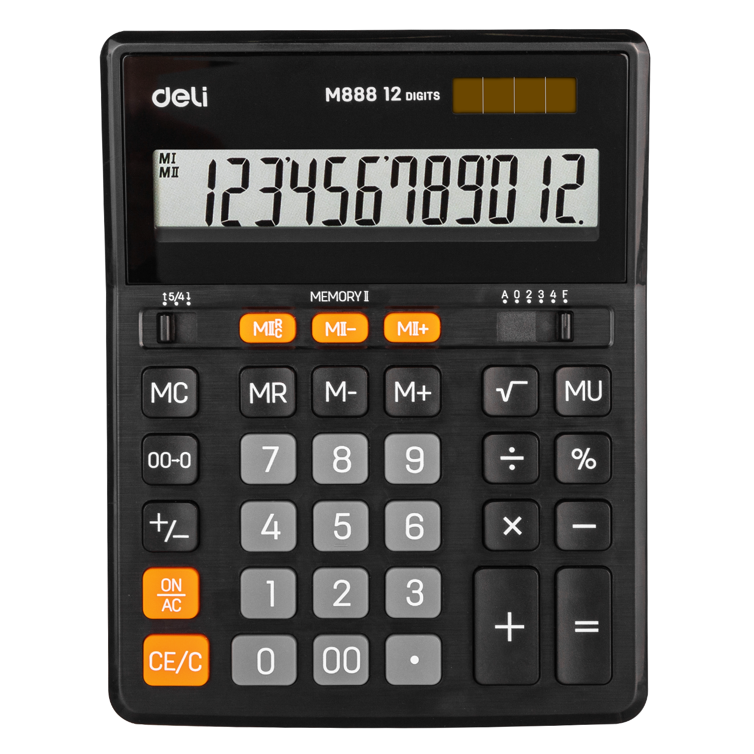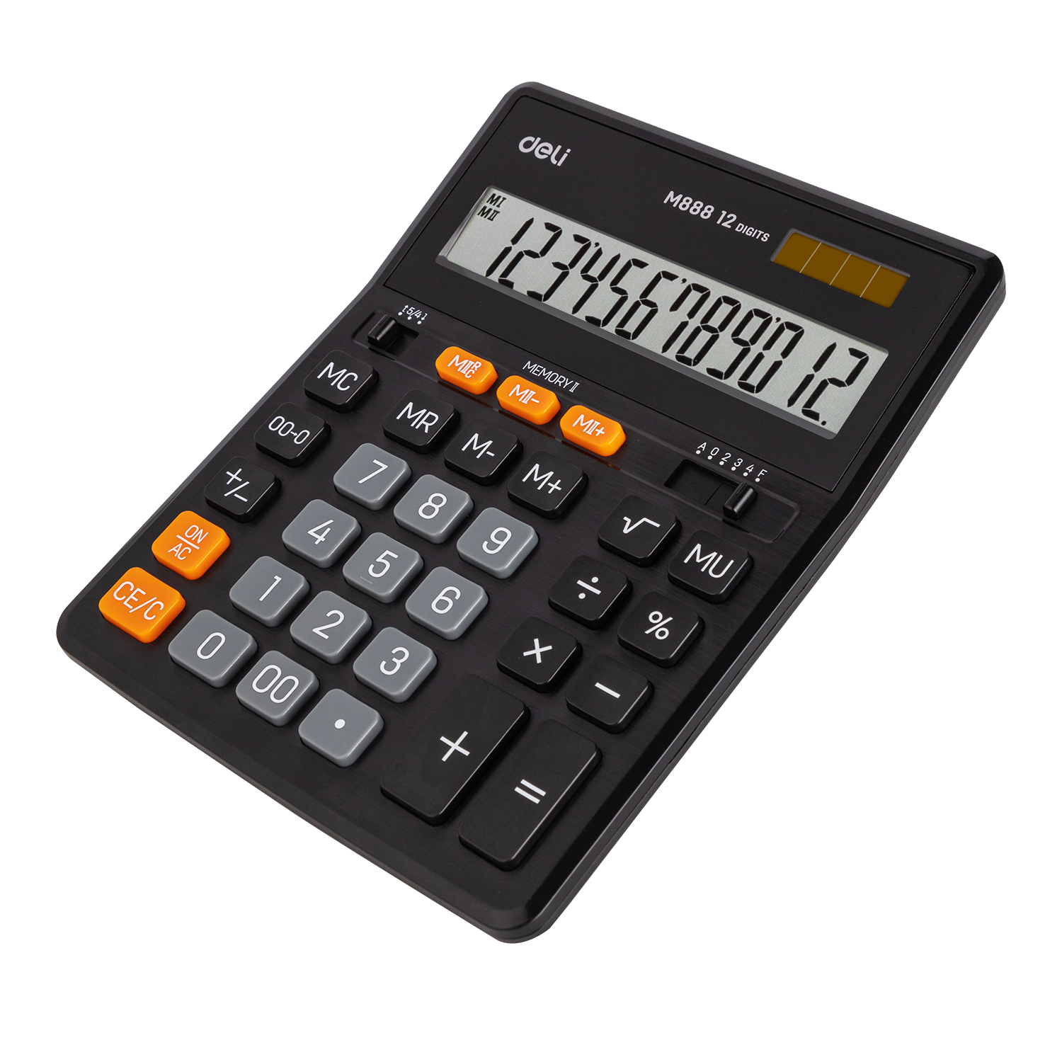 Всемирно известный производитель канцелярских товаров компания Deli представляет настольный 12-разрядный калькулятор EМ888. Классическая форма и стандартное положение кнопок не вызовут затруднений у людей, привыкших работать на калькуляторах других моделей и производителей. А благодаря исключительному качеству сборки, выдающимся техническим характеристикам и высококачественным материалам изготовления этот калькулятор долгие годы будет надёжным помощником на работе, в школе и дома.