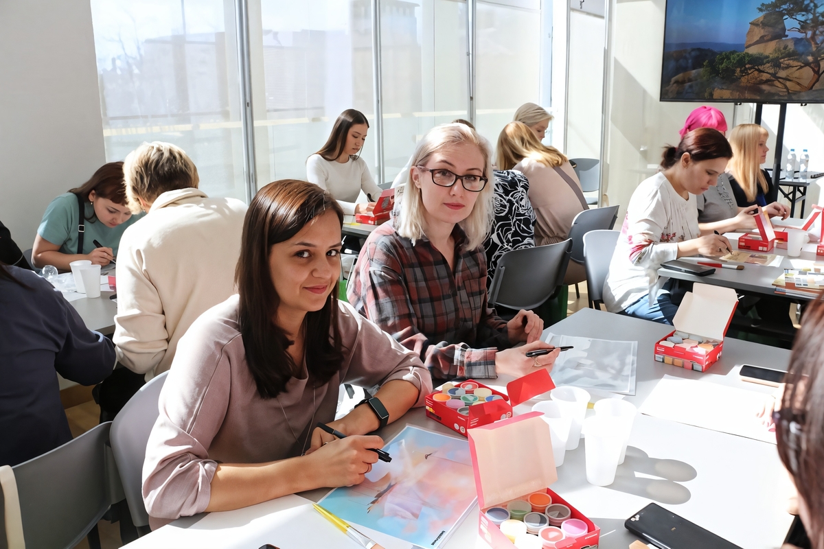 Мастер-класс «Метод зеркального отражения. Инновации в гуашевых красках» с гуашью в коллекции Jolly Friends и серии Kids продемонстрировал педагогам высокий уровень комфорта при работе с творческими материалами и пользу с методической точки зрения. Учителя отметили яркость красок, заметные на бумаге и пластиковой поверхности. Педагоги поделились, что каждый год с нетерпением ждут визита ErichKrause, чтобы обучиться новым методикам самим, и с успехом применить навыки в обучении детей.