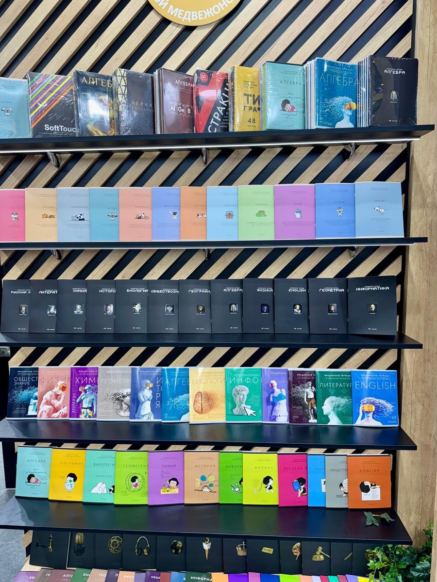 На стенде были представлены новые школьные коллекции предметных тетрадей на 2025 год, такие как «Стикеры», «Несерьёзные предметы», «Калейдоскоп», «Нахимичили». Также были представлены новинки блокнотов, альбомов и тетрадей.