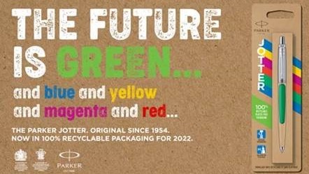 Фабрика по производству ручек Parker приняла решение отказаться от использования пластика в блистерной упаковке Jotter. Взамен неё планируется использовать картонную. Компания мотивирует своё решение заботой об окружающей среде.