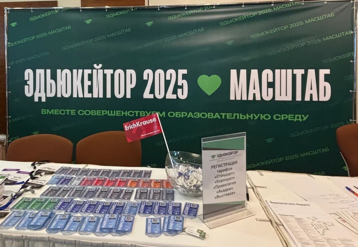 С 25 по 26 октября в Подмосковье прошла восьмая международная конференция «Эдьюкейтор-2025». Событие объединило собственников, руководителей и сотрудников образовательных проектов, чтобы повысить уровень развития сферы частного обучения. Более 700 участников из 150 городов России, СНГ, Азии и Европы приехали на форум. ErichKrause стал официальным партнёром мероприятия и подготовил продукцию для слушателей.