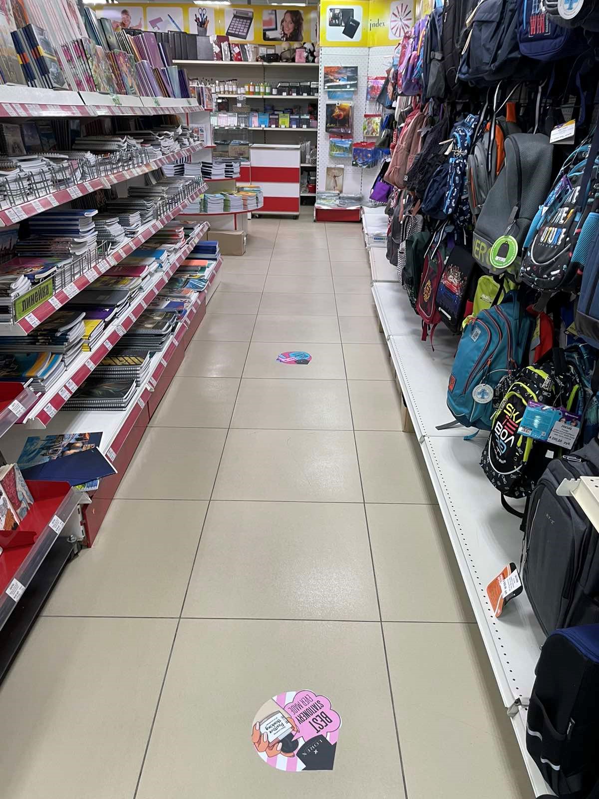 Исследования показали, что при покупке продукции бренда «Каляка-Маляка» работают эмоционально-побудительные мотивы. Поэтому мы создали материалы с элементами игры — напольные стикеры в виде отпечатков лапок животных. Самые маленькие потребители, увидев их на полу, проходят по следам и оказываются рядом с полкой наших товаров, где видят, что тот самый зверёк уже расположился на пачках фломастеров, карандашей и пластилина «Каляка-Маляка».