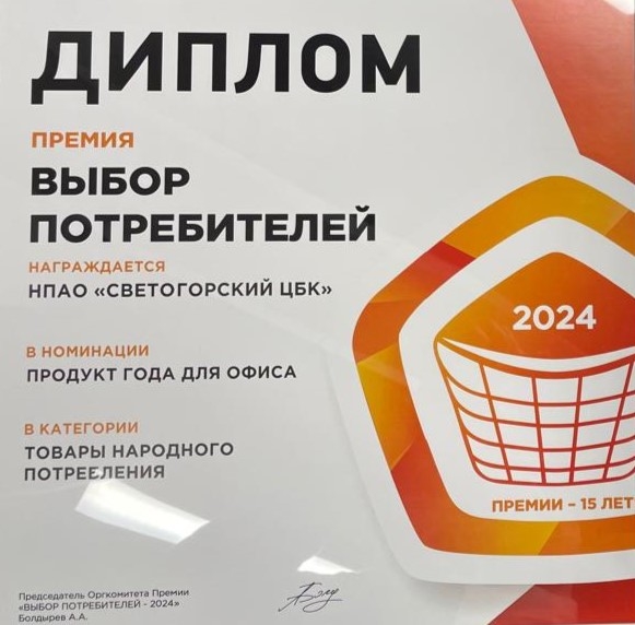 В этом году в результате независимого голосования покупателей бренд офисной бумаги SvetoCopy был выбран продуктом года для офиса.