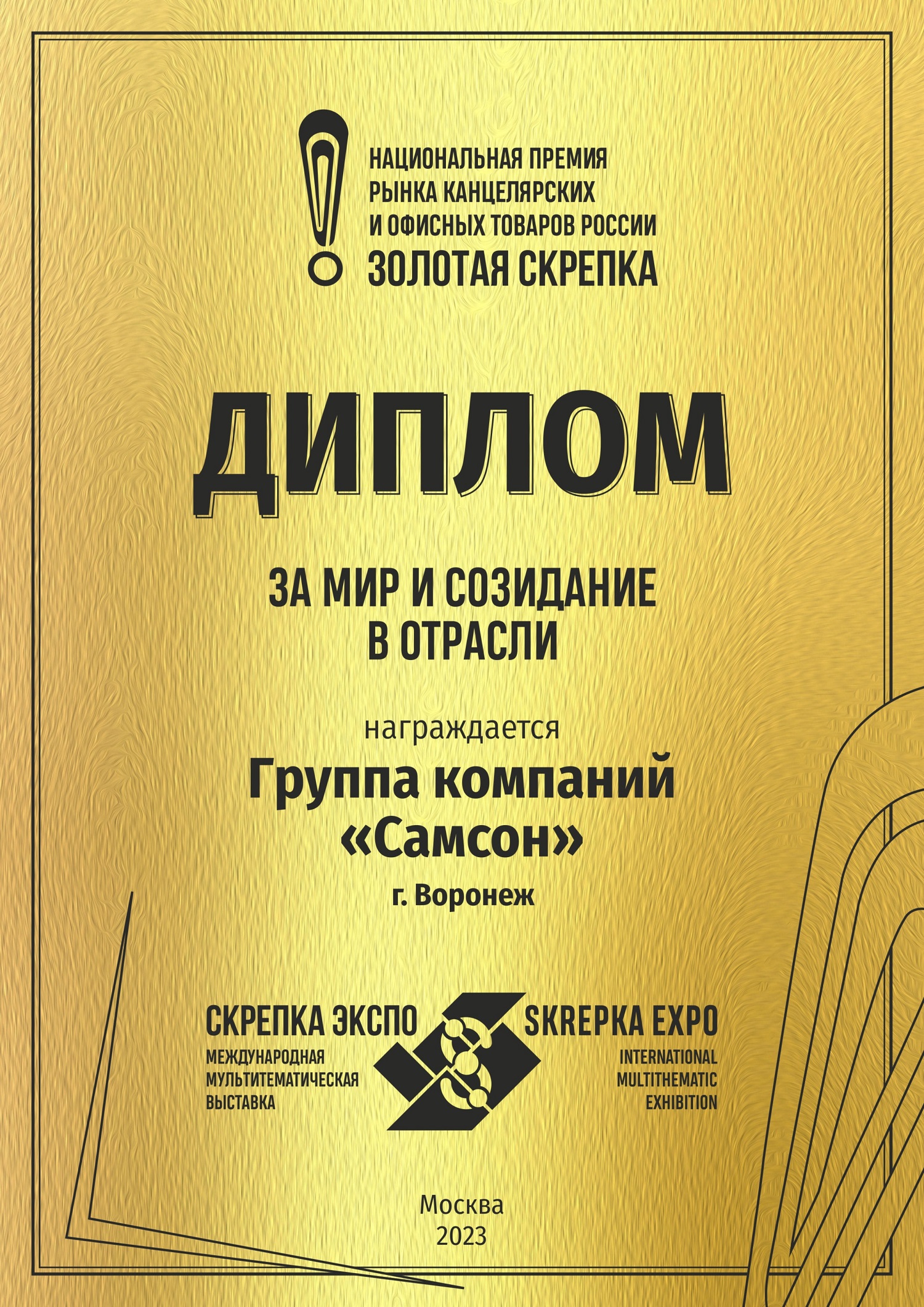 Объединение и консолидация отрасли особенно важны для участников канцелярского рынка. По итогам 2022 года специальными золотыми дипломами «За мир и созидание в отрасли» были награждены: