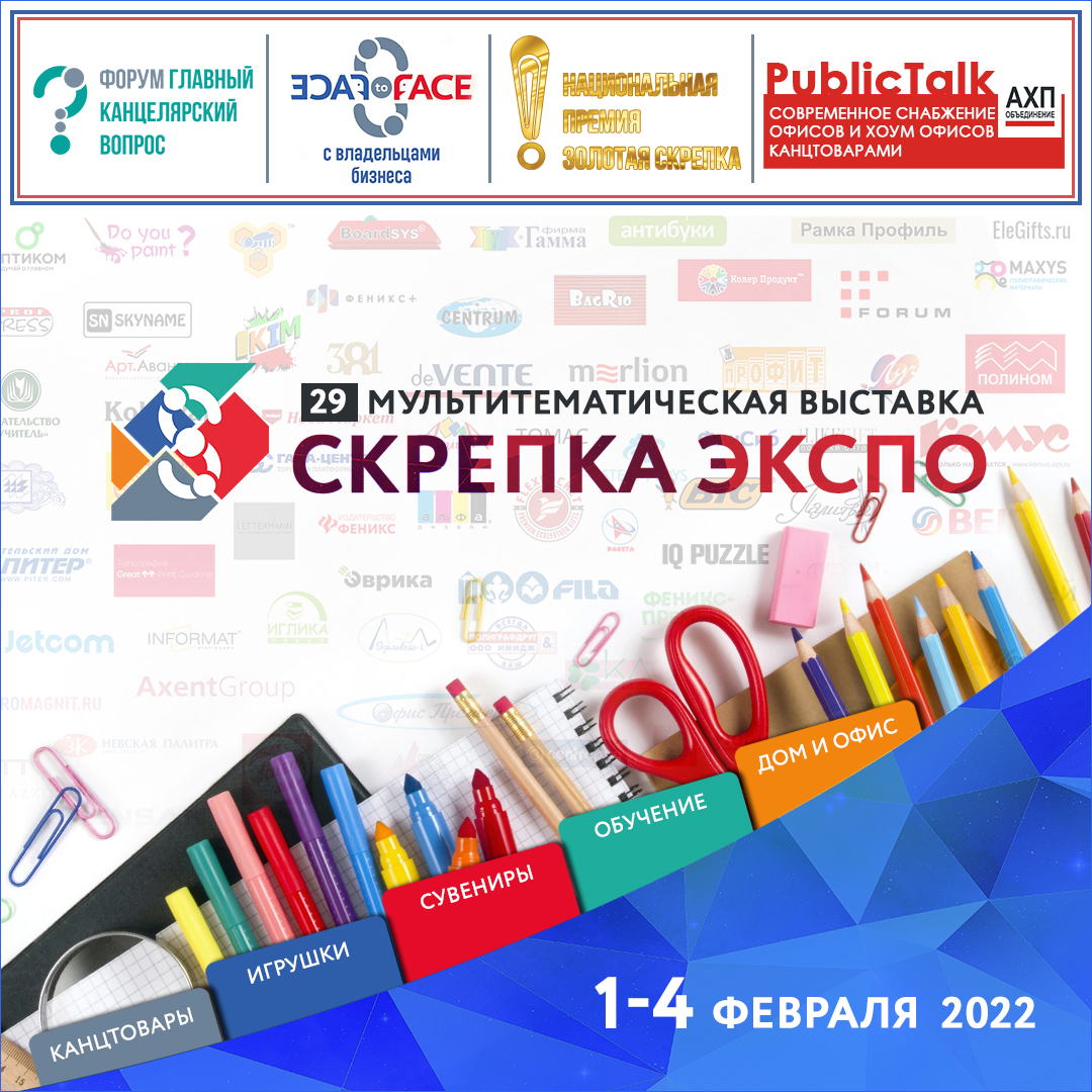 29-я Международная мультитематическая выставка «Скрепка Экспо» и комплекс мероприятий «Большой Канцелярской недели» — это первое глобальное межотраслевое событие 2022 года, объединяющее профессионалов нескольких отраслей — канцелярских товаров, продукции для хобби и творчества, игрушек и игр, товаров для обучения, сувениров и подарков.